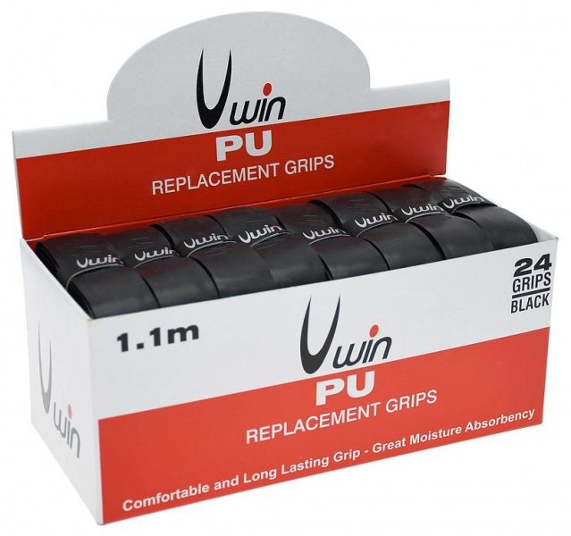 Uwins grepplinda passar för tennis-, badminton-, squash-, padel- och pickleballracketar. Greppets längd är 110 cm och tjockleken 1,8 mm. Material: PU. Färg: svart.