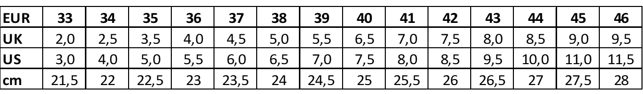 Observera! Health-spikskor har en något mindre storleksmärkning, välj en storlek större än din vanliga skostorlek.