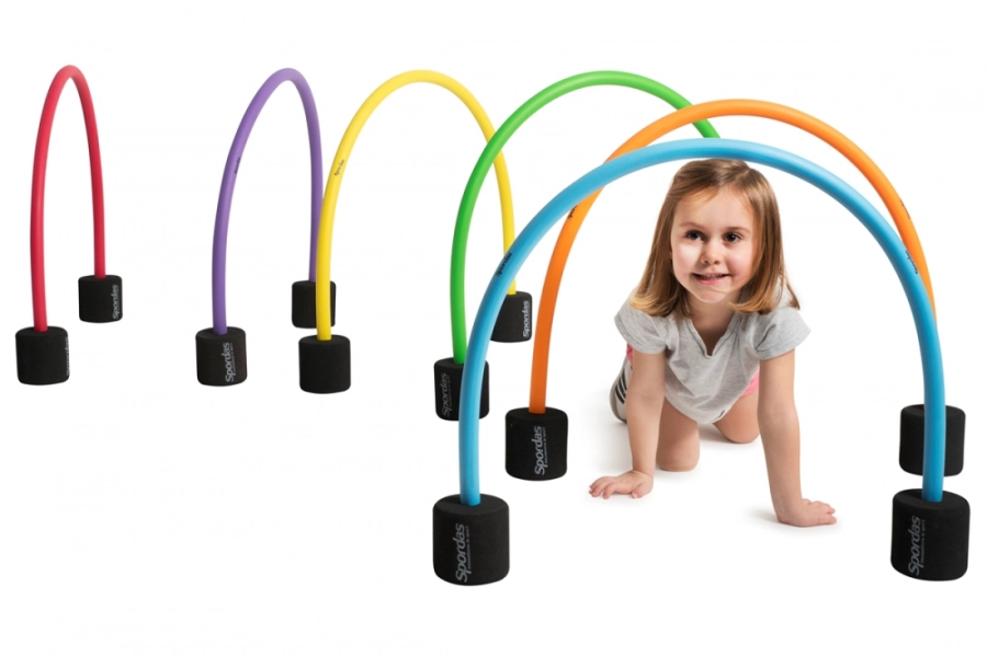 Krypportar belagda med PU-skum kan användas för att träna krypfärdigheter samt för att kasta eller sparka en boll eller ett föremål genom bågen. Krypportarna är tillverkade av säker och hållbar skumplast. Bågarna stöds av vikter som är integrerade i fötterna. Höjden kan justeras mellan 53 och 61 cm genom att enkelt flytta stödbenen. Sex portar i olika färger.
